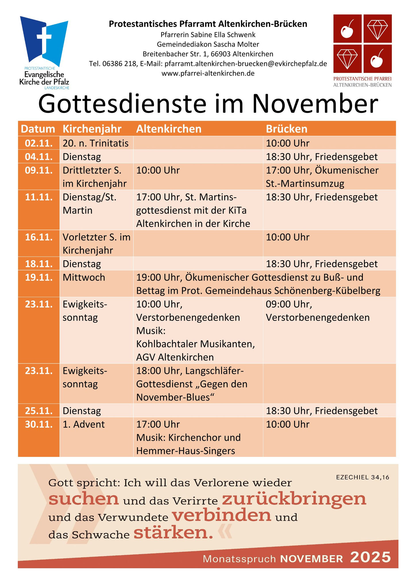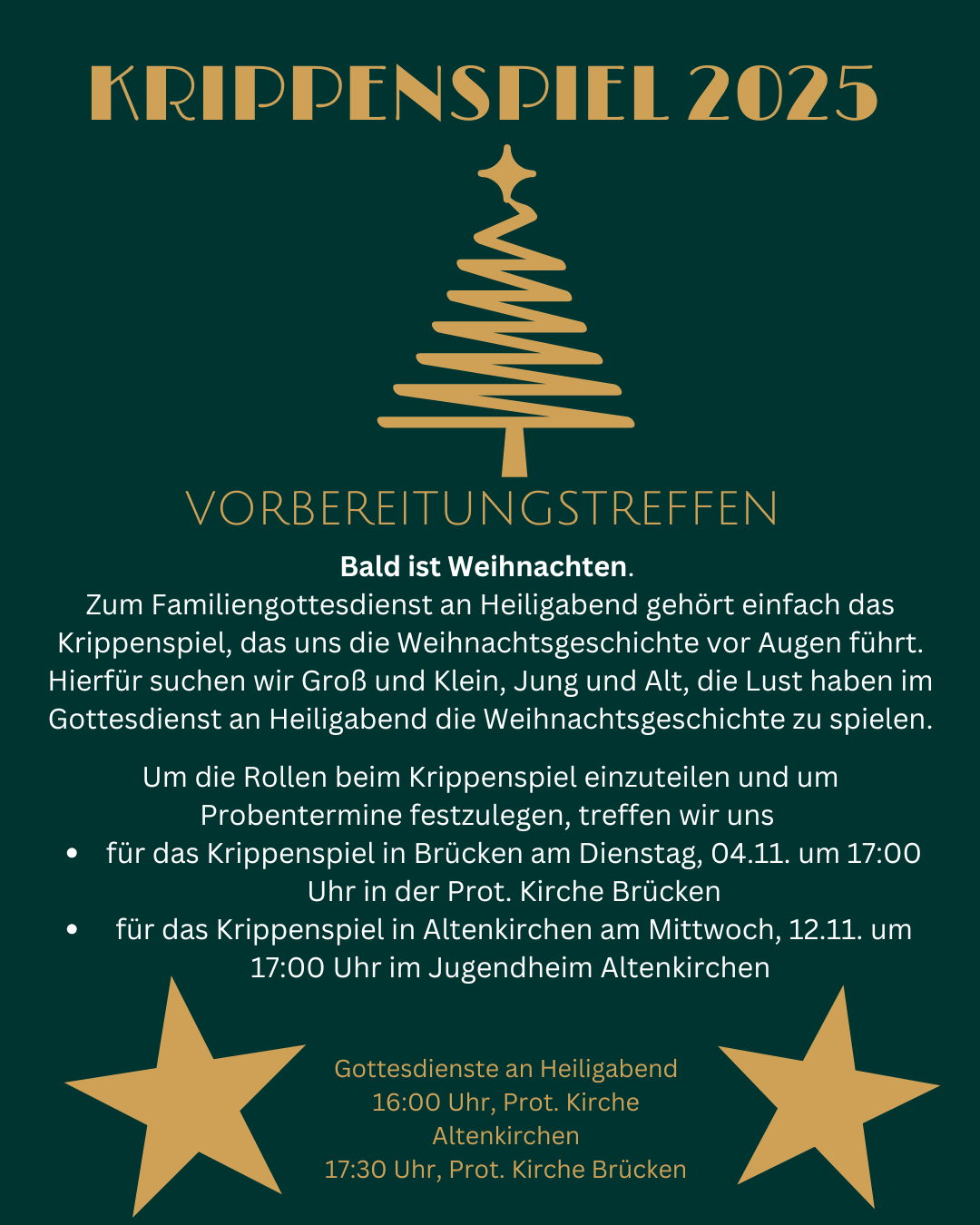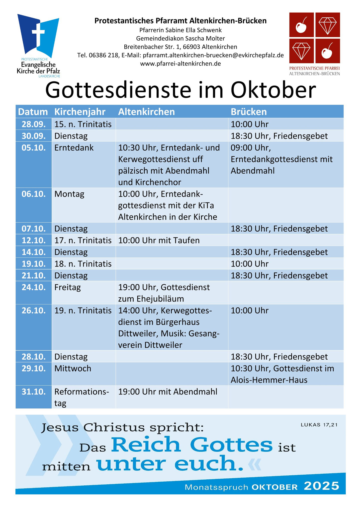 Am Montag, 27.10.2025 um 19:00 Uhr tagt das Presbyterium Jugendraum/Gemeinderaum in Brücken. Die Sitzung ist wie immer öffentlich.